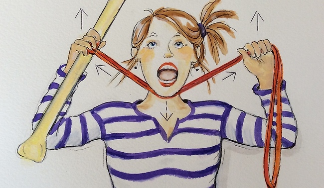 Känn hur halsmusklerna och käkpartiet får jobba. Se bild nedan.