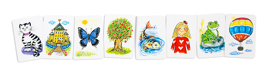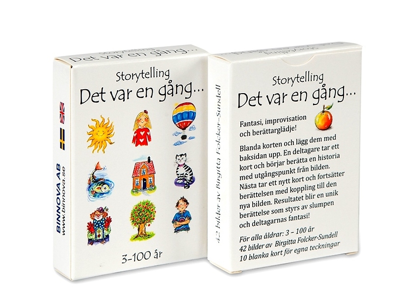 "Det var en gång..." - berättarkorten som inspirerar till storytelling. Produkten kom till efter det att min egen fantasi tagit slut då jag skulle berätta egna sagor för mina barnbarn. Jag insåg att om man har ett antal bilder kan man med bildernas hjälp skapa ett oändligt antal historier och dessutom göra det tillsammans. Till och med tvååringen väntar på sin tur och berättar sedan något...